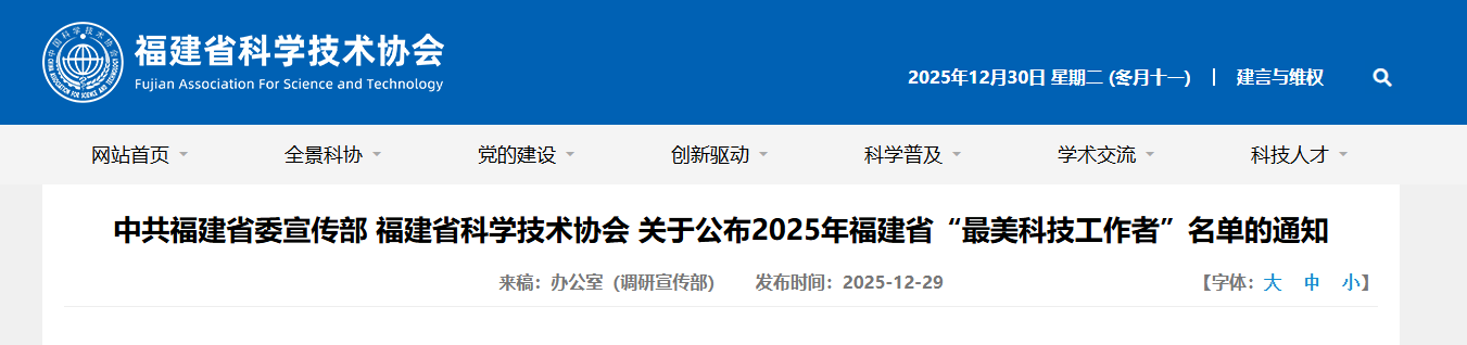 www.fjsen.com 2025-12-30 16:53:15 来源:福建省科学技术协会网站