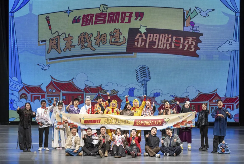 东南网12月30日讯(本网记者 庄宇婧)“这是我第一次来到金门,但闽南我已经生活了快二十年了。”当主持人魏鹤用带着亲切乡音的闽南话向金门乡亲问好时,台下响起了会心的笑声与热烈的掌声。12月27日,应金门县闽南文化协会邀请,由福建省文化和旅游促进会组织的“欢喜就好”——周末戏相逢金门脱口秀(闽南文化专场)在金门县文化局艺文中心温情上演。这是福建“闽派”特色文化品牌“周末戏相逢”首次走进金门,也是闽南文化脱口秀首次登陆金门,为当地乡亲带来了一场融合幽默表演、非遗展示与艺术表达的闽南风情盛宴。
