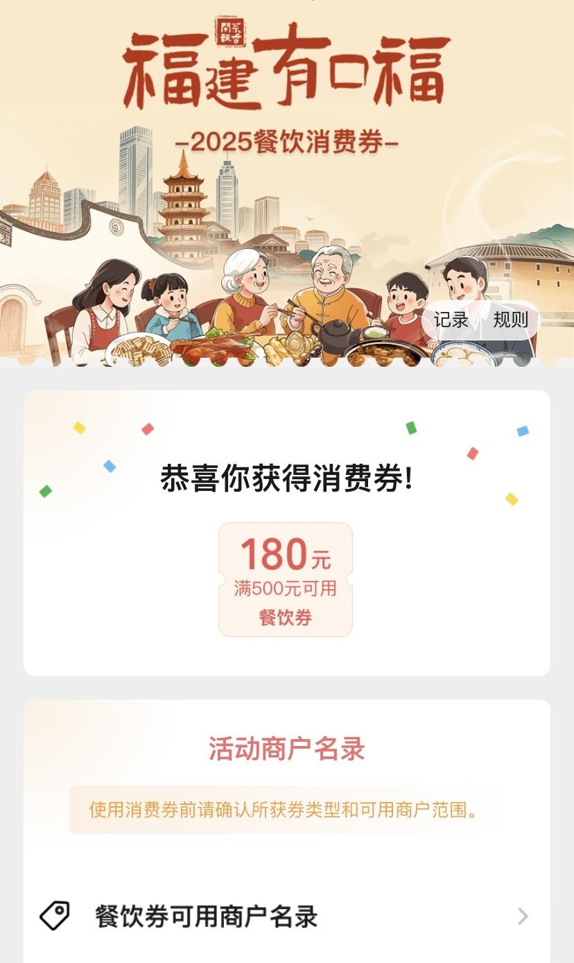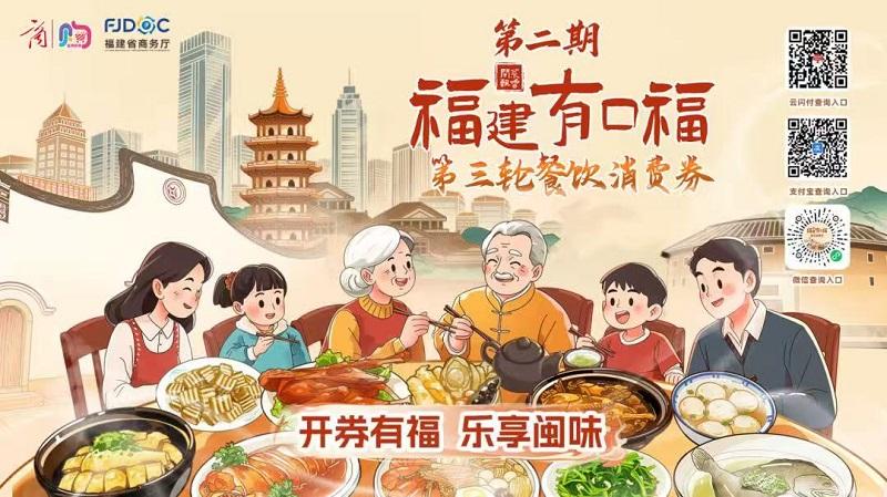 为带动线下餐饮消费,福建省安排4000万元资金,于2025年11月至2026年1月开展2025年第二期“福建有口福”餐饮消费券发放活动(活动不覆盖厦门市商户),活动共分三轮进行,让餐饮消费“烟火”更旺,热度更高。