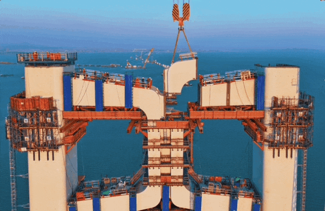 厦金大桥厦门段首榀海上钢箱梁吊装成功
