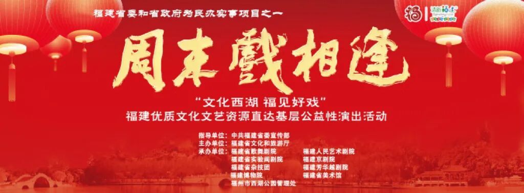 《声生不息》福建省歌舞剧院合唱团2026新年专场音乐会 时间:1月30日 20:00 地点:福建大剧院音乐厅 演出单位:福建省歌舞剧院 市县动态 各地市“周末戏相逢”福建优质文化文艺资源直达基层公益性演出活动,请关注当地文旅及院团微信公众号 福州 “有福之州 闽韵流芳”闽剧优秀剧目展演《珍珠塔》 时间:1月12日 19:30 地点:福州闽剧院 演出单位:福州闽剧艺术传承发展中心 厦门 缤纷厦门 欢乐跨年2026元旦厦门园博苑凤凰花集开放活动 时间:1月1日 16:00 地点:厦门园博苑嘉年华舞台 演出单位:厦门歌舞剧院 歌仔戏《燕归巢》 时间:1月13日 19:00 地点:厦门闽南戏曲艺术中心 演出单位:厦门歌仔戏研习中心 漳州 “拢来古城 偶遇新年”演出活动 时间:1月1、3日 16:00、19:30 地点:漳州古城木偶艺术表演馆 演出单位:漳州市布袋木偶传承保护中心 泉州 2026年元旦演出周梨园戏《董生与李氏》(青春版) 时间:1月1、2日 19:30 地点:泉州新门街梨园古典剧院 演出单位:福建省梨园戏传承中心 高甲戏优秀传统剧目下基层演出 时间:1月1日 19:30 地点:泉州市关帝庙 演出单位:泉州市高甲戏传承中心(泉州市打城戏传承中心) 三明