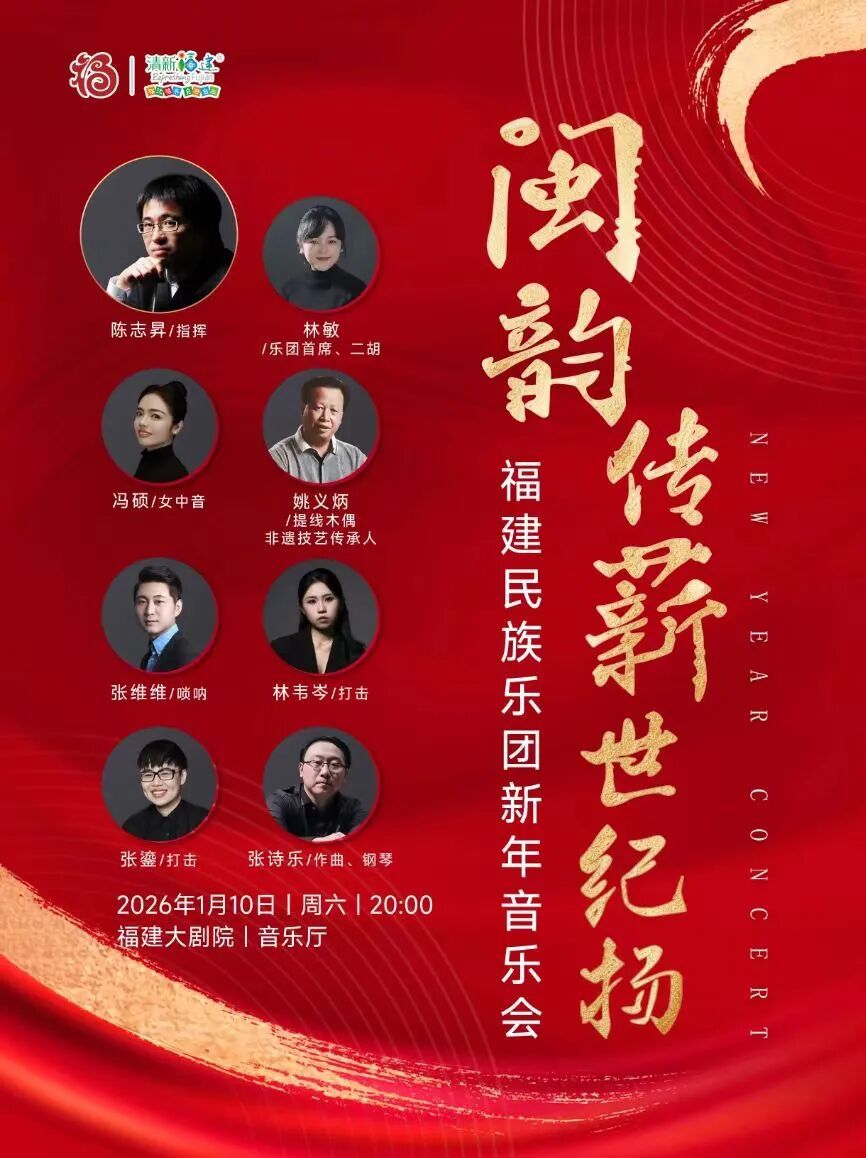 “闽韵传薪世纪扬”福建民族乐团新年音乐会 时间:1月10日 20:00 地点:福建大剧院音乐厅 演出单位:福建省歌舞剧院