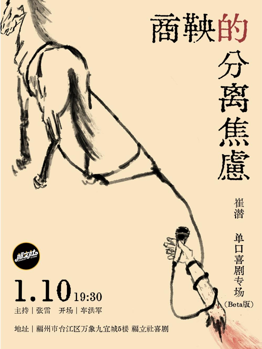 福立社喜剧《商鞅的分离焦虑》崔潜个人专场 时间:1月10日 19:30 地点:万象九宜城福立社喜剧 票价:99元 购票渠道:“福立社喜剧”微信公众号 福立社喜剧《半公式》胡萝北个人专场 时间:1月17日 19:30 地点:万象九宜城福立社喜剧 票价:120/150元 购票渠道:“福立社喜剧”微信公众号 福立社喜剧《佳贝爱》线下喜剧恋综 时间:1月22日 19:30 地点:万象九宜城福立社喜剧 票价:131.4元 购票渠道:“福立社喜剧”微信公众号