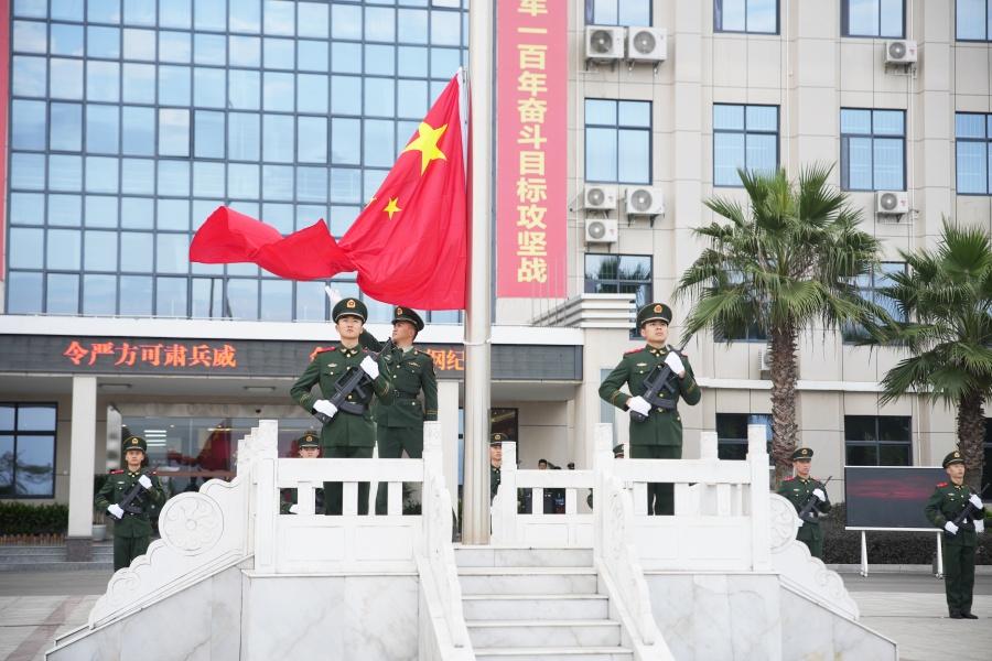仪式在雄壮的中华人民共和国国歌中拉开序幕,鲜艳的五星红旗冉冉升起,全体官兵昂首肃立、敬礼致意,满腔赤诚与坚定信念在晨光中激荡。鲜红的旗帜在风中猎猎作响,点燃了官兵们抓安创安的昂扬斗志。
