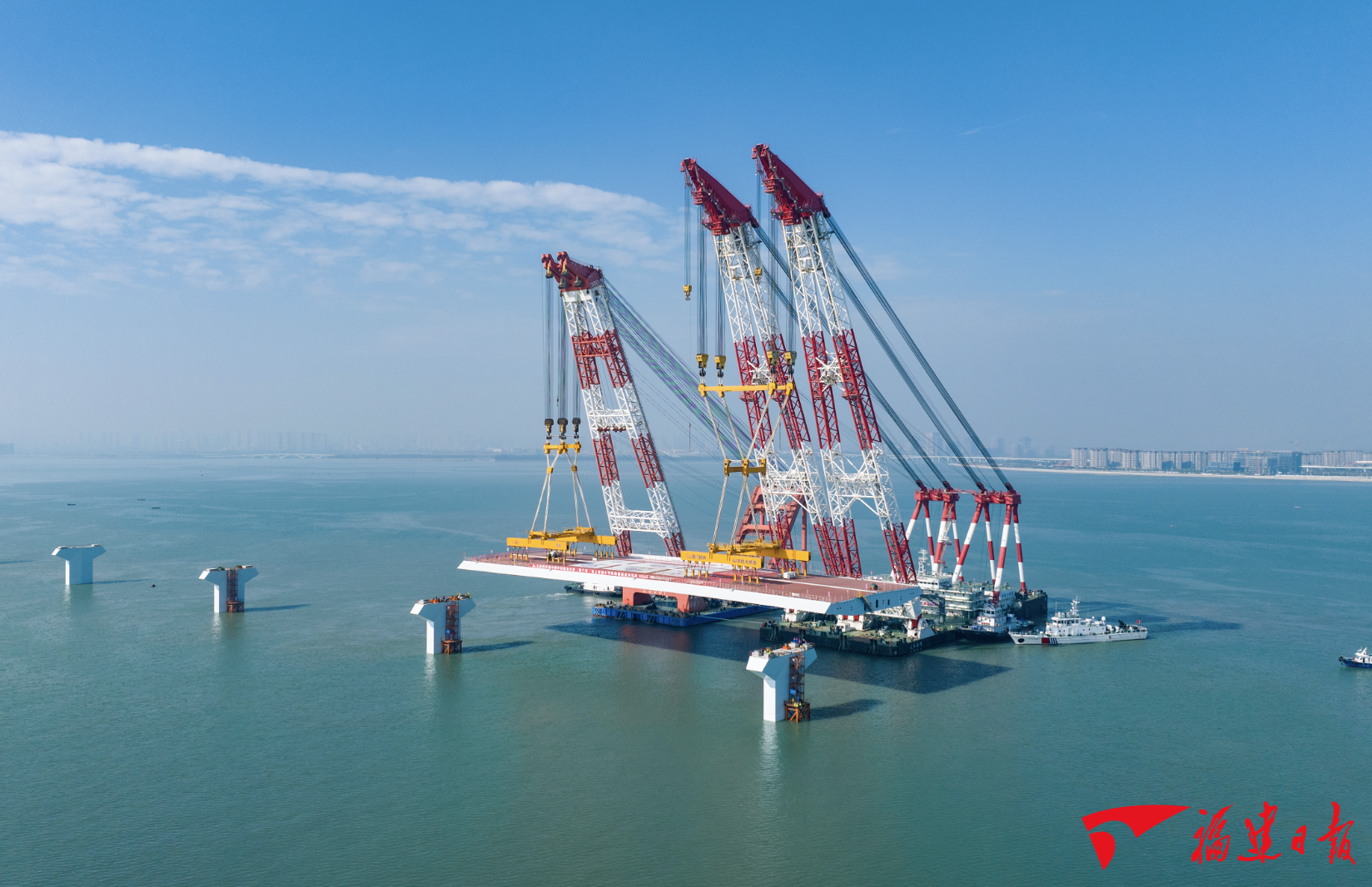 2025年12月20日,厦金大桥厦门段项目海上首榀钢箱梁吊装成功。