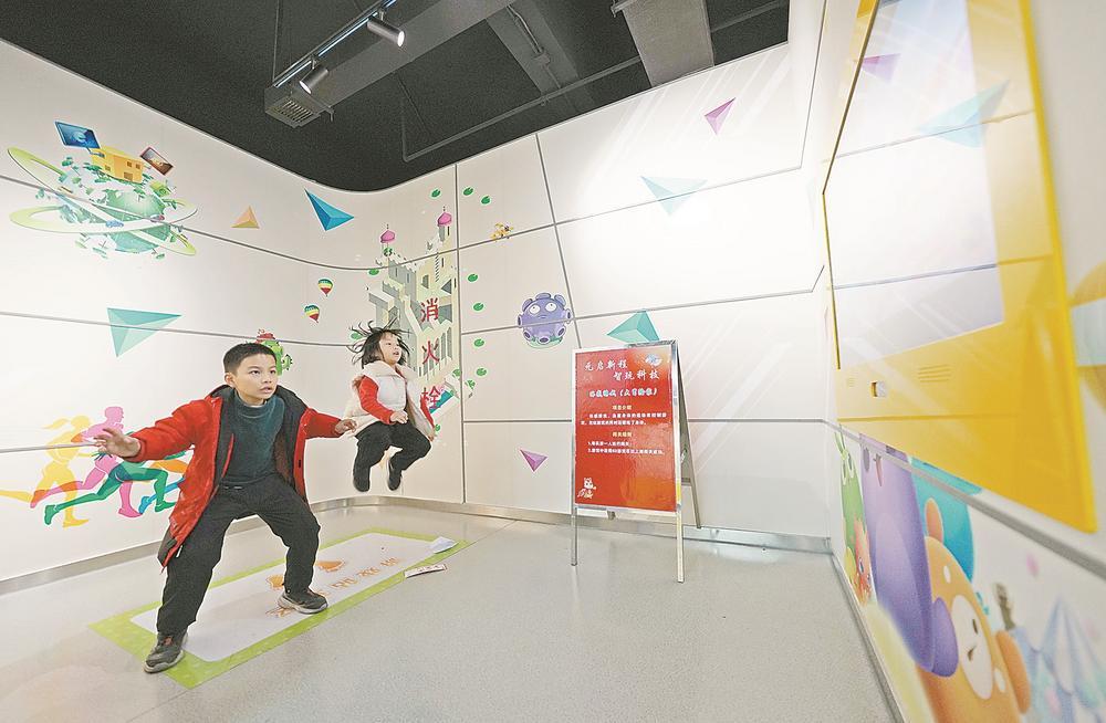 1月1日,泉州市泉港区科技馆开展以“元启新程·智玩科技”为主题的元旦科普活动,为青少年学生送上丰盛的“科普大餐”。图为孩子们沉浸在体感游戏的乐趣中。福建日报通讯员 林弘梫 摄影报道