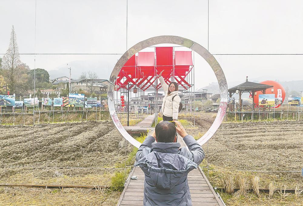 元旦假日,乡村游热闹起来。图为1月1日,南平市顺昌县元坑镇东郊村,游人在摄影展区打卡拍照,乐享新年第一个假期。福建日报通讯员 黄杰敏 摄影报道