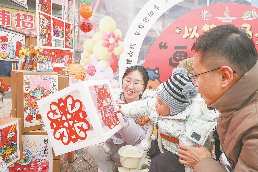 1日,建宁县举办“以梦为马——‘画’说中国年”新年画展。活动共征集500余幅少年儿童作品,吸引大批市民看画展迎新年。图为生动的剪纸作品吸引了小娃娃的目光。福建日报见习记者 李子衡 通讯员 陈震 摄