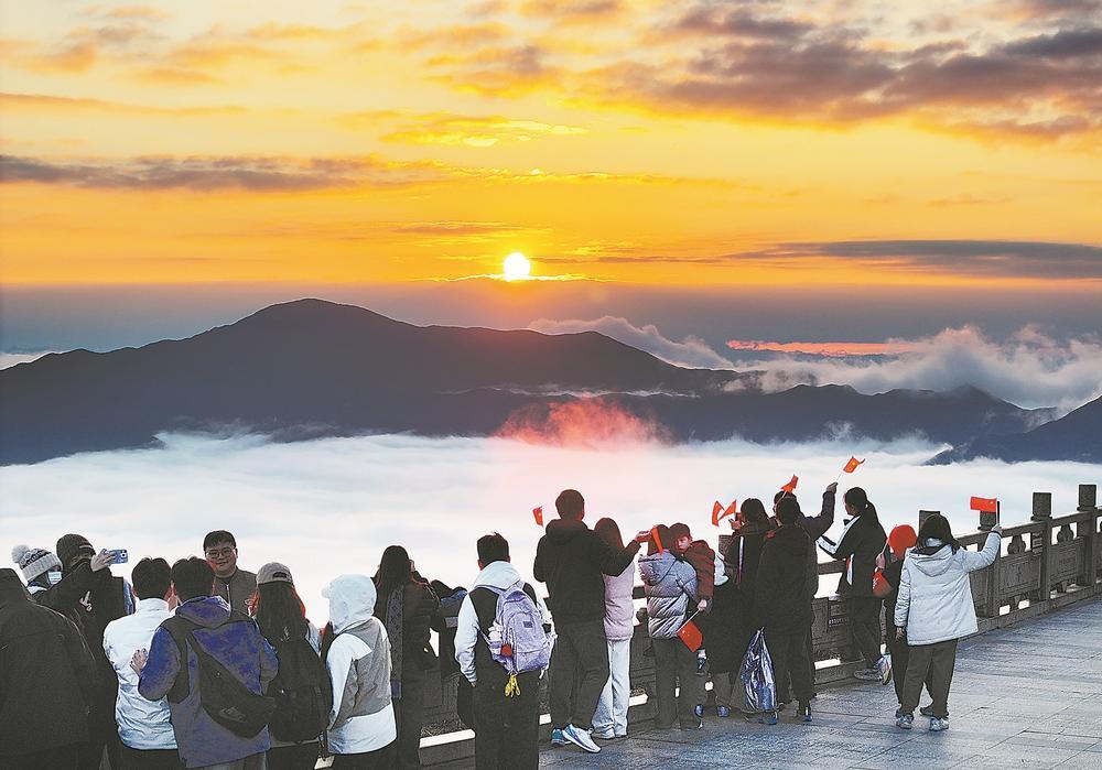 1日,游客在泉州市德化县九仙山迎接2026年第一缕阳光。 张九强 摄