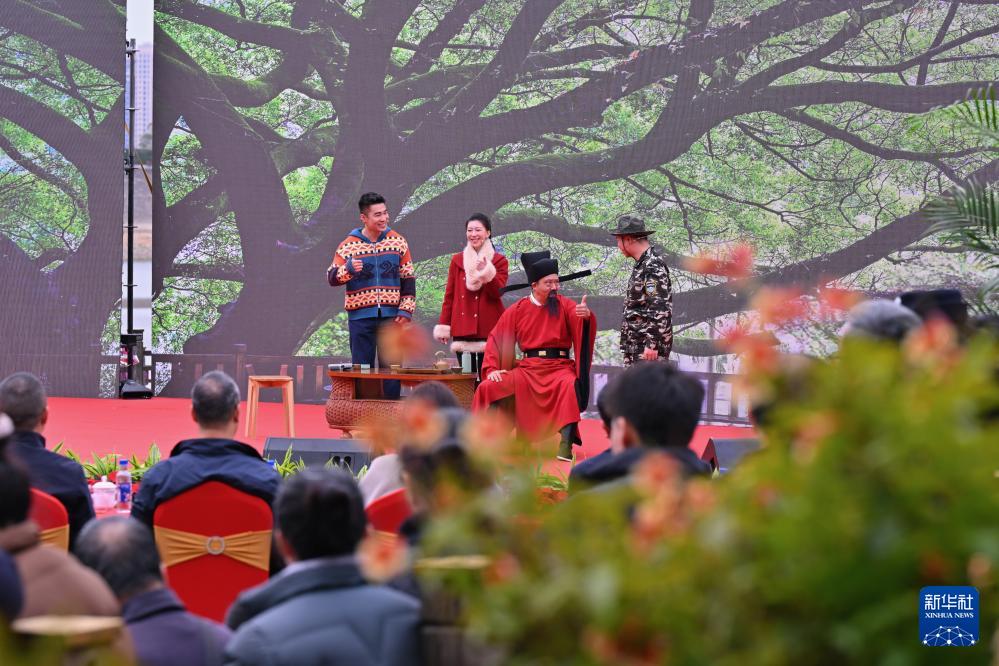 2026年1月1日,福州植物园干部职工在2026新年文艺汇演上表演情景剧《四库茶会》。