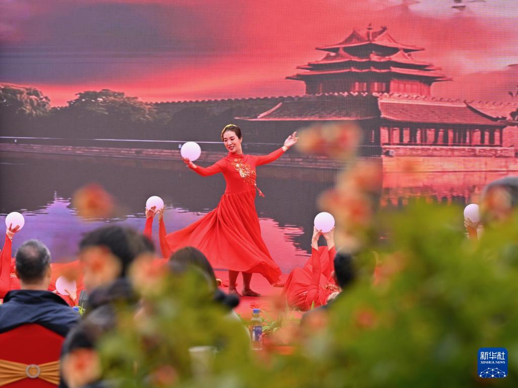 2026年1月1日,福州植物园干部职工在2026新年文艺汇演上表演歌舞《阳光路上》。
