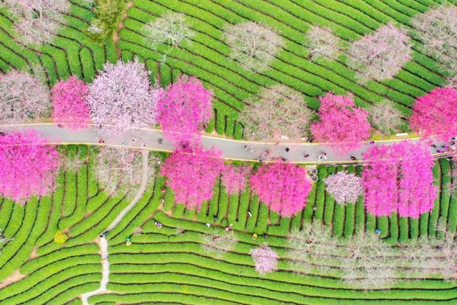 作为国家地理标志樱花胜地,永福茶园樱花在文旅部门持续支持下,已成为全国知名的花茶旅融合典范。每年春季,十万株樱花与万亩茶园交相辉映,被誉为“中国最美樱花胜地”。