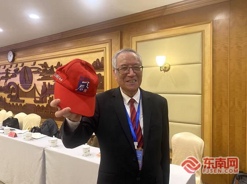 “小三通”首航亲历者、马祖前民意代表曹尔忠带来25年前首航时戴的帽子。东南网记者卢金福 摄