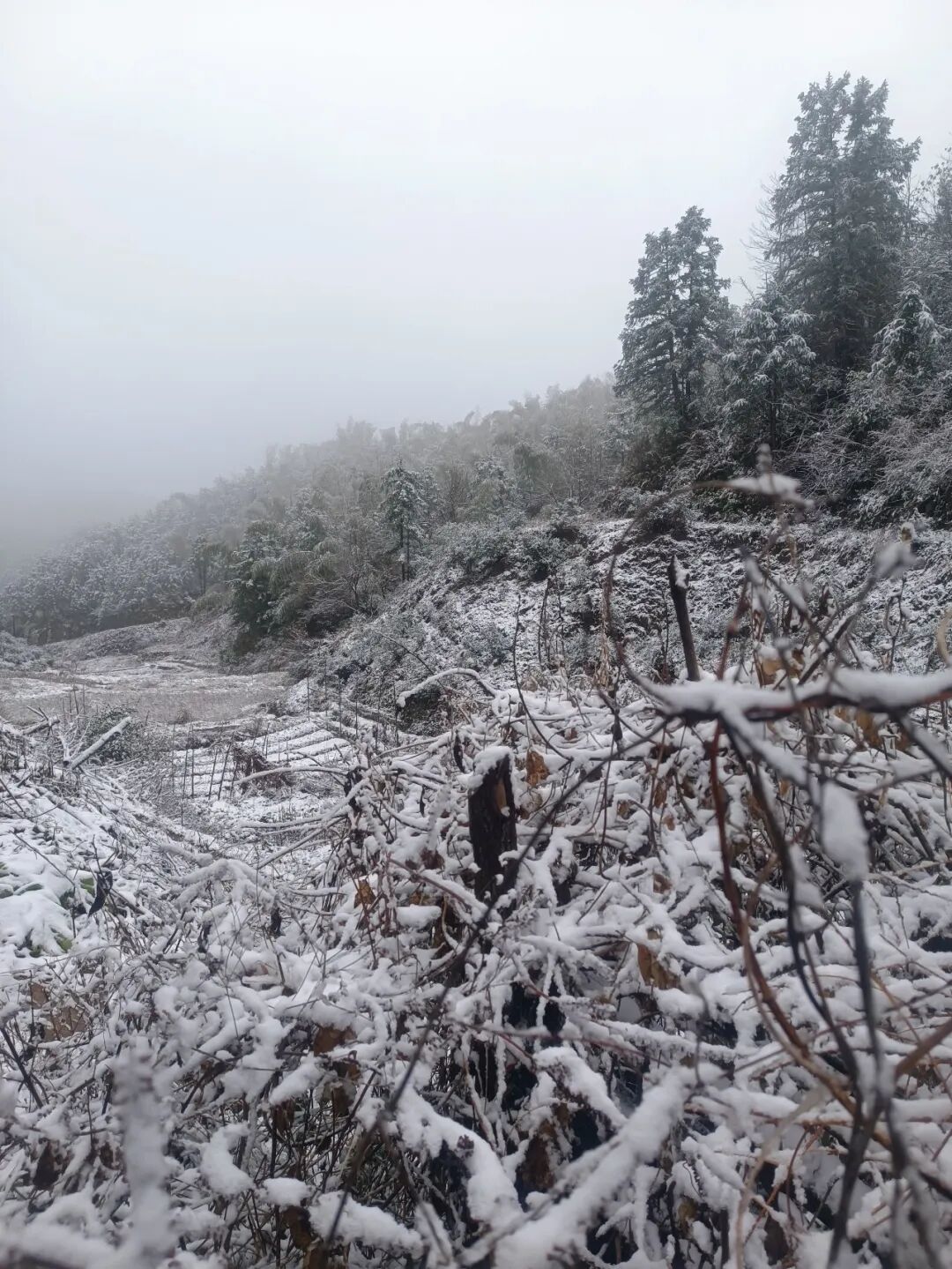 福建省南平市海拔较高的地方便迎来了新年的第一场雪