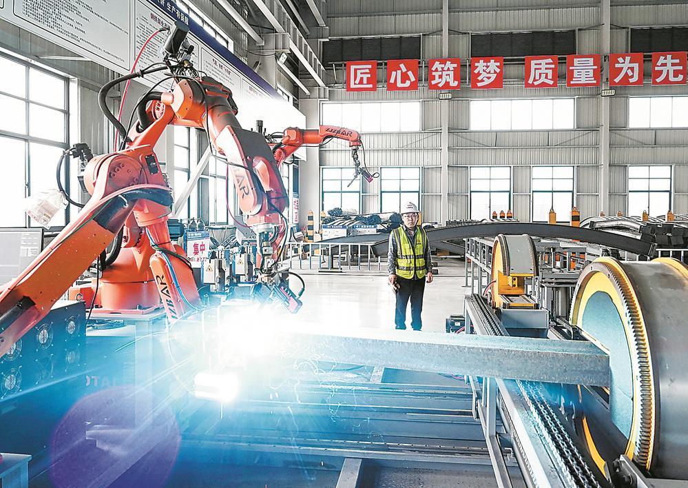 1月1日,漳汕高铁福建段1标的1号钢构件综合加工场内,施工人员在巡视机器人作业。林善传 摄