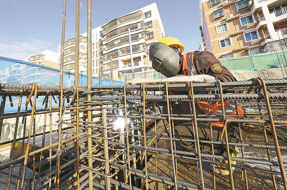 1月2日,泉州市泉港区后龙镇的馨和乐居项目近60名施工人员坚守岗位,同步进行基石转运、模板安装、钢筋预制绑扎等作业,全力推进工程进度。林弘梫 摄