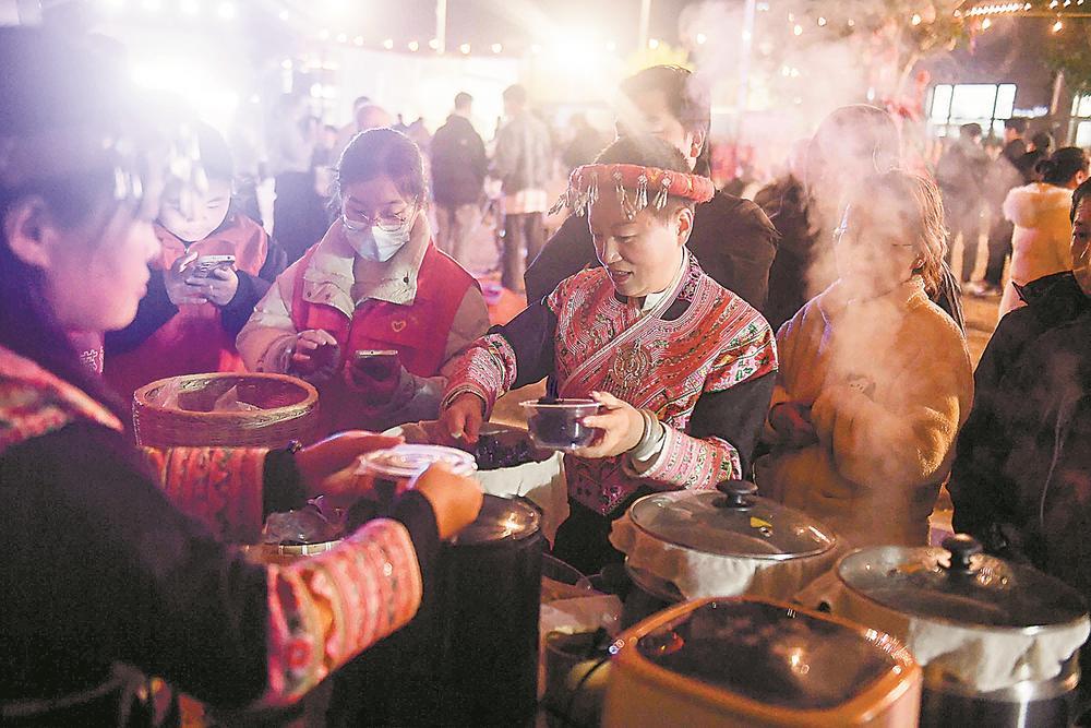 1日,罗源湾滨海新城,畲族乌米饭摊位前人头攒动。 刘其燚 摄