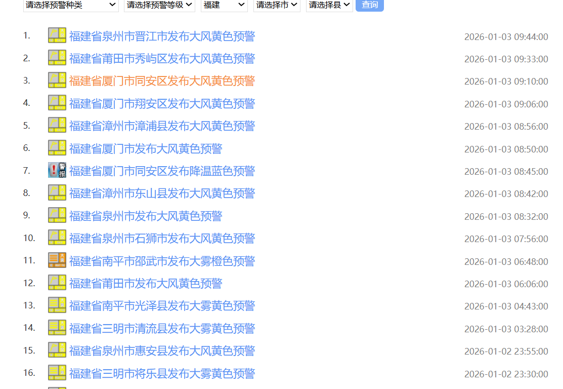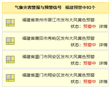 福建92个大风黄色预警