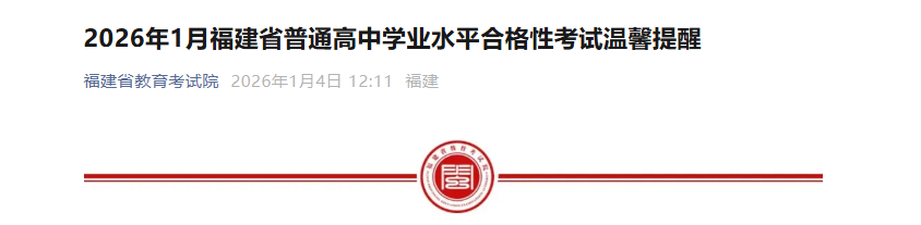 2026年1月福建省普通高中学业水平合格性考试温馨提醒