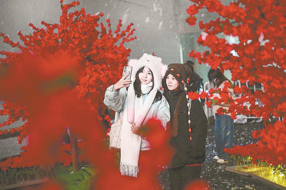 绚烂的烟花只是序幕。1314米爱情公路、城市告白荧幕、巨型玫瑰艺术装置等多个浪漫主题打卡点惊艳亮相;在平潭国际演艺中心大剧场内,比利时布鲁塞尔爱乐乐团奏响2026新年音乐会;在户外露天舞台上,乐队、舞团轮番登场,掀起阵阵声浪;行走在吾悦广场,各大商铺换上新年主题装饰,集中推出各类促销活动……这一夜,平潭处处涌动着消费的热潮,绘就了一幅充满仪式感的海岛跨年新图景。