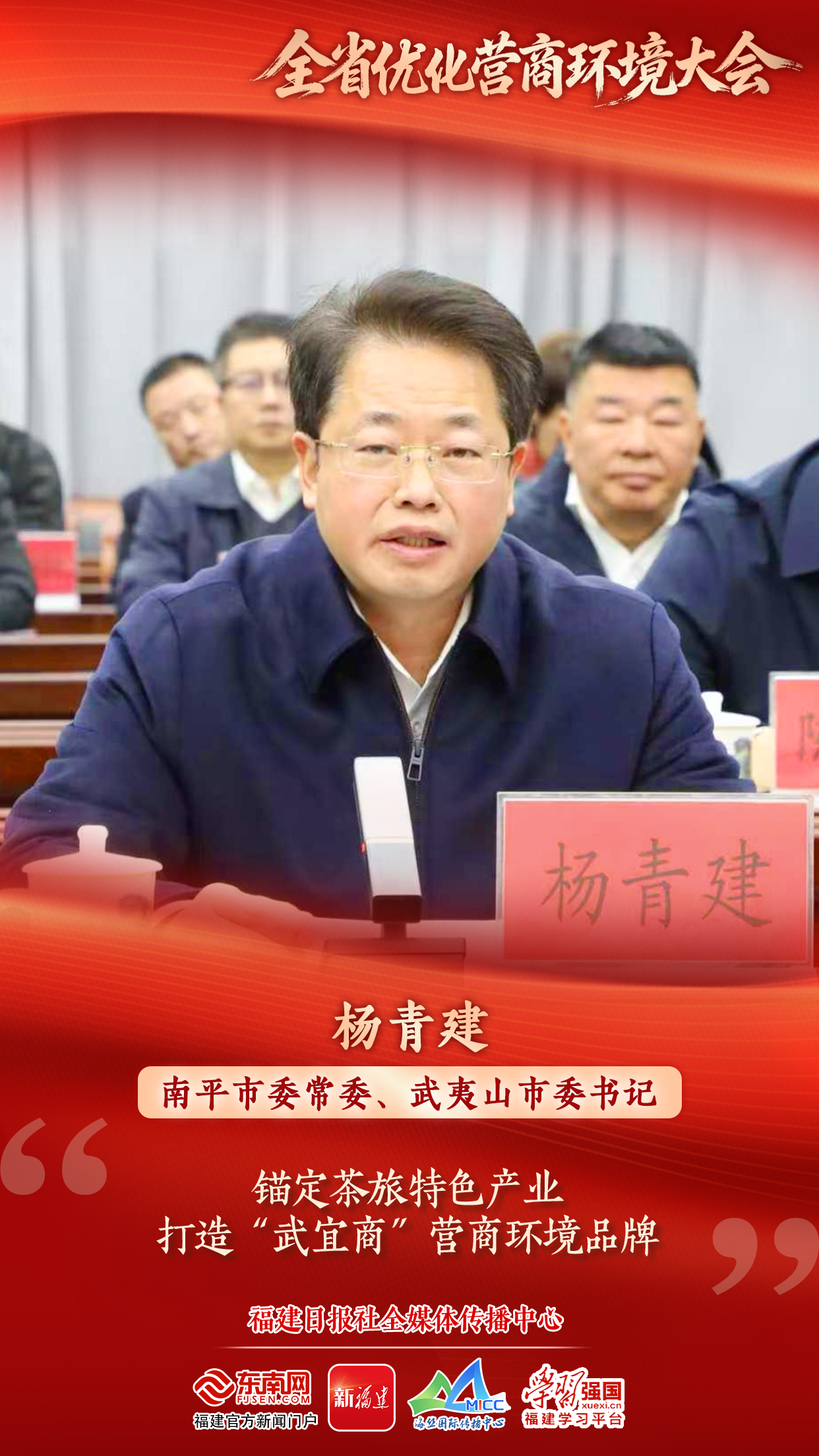 1月4日,新年首个工作日,福建召开全省优化营商环境大会,吹响了新一年“拼经济、促发展”的奋进号角。会上,省发改委主要负责同志汇报了全省营商环境建设情况和下一步工作考虑,省委政法委、国网福建电力公司和泉州市、武夷山市的负责同志,有关专家代表,省内外商会、省营商环境观察员代表等各界人士齐聚一堂,交流经验、出谋献计。