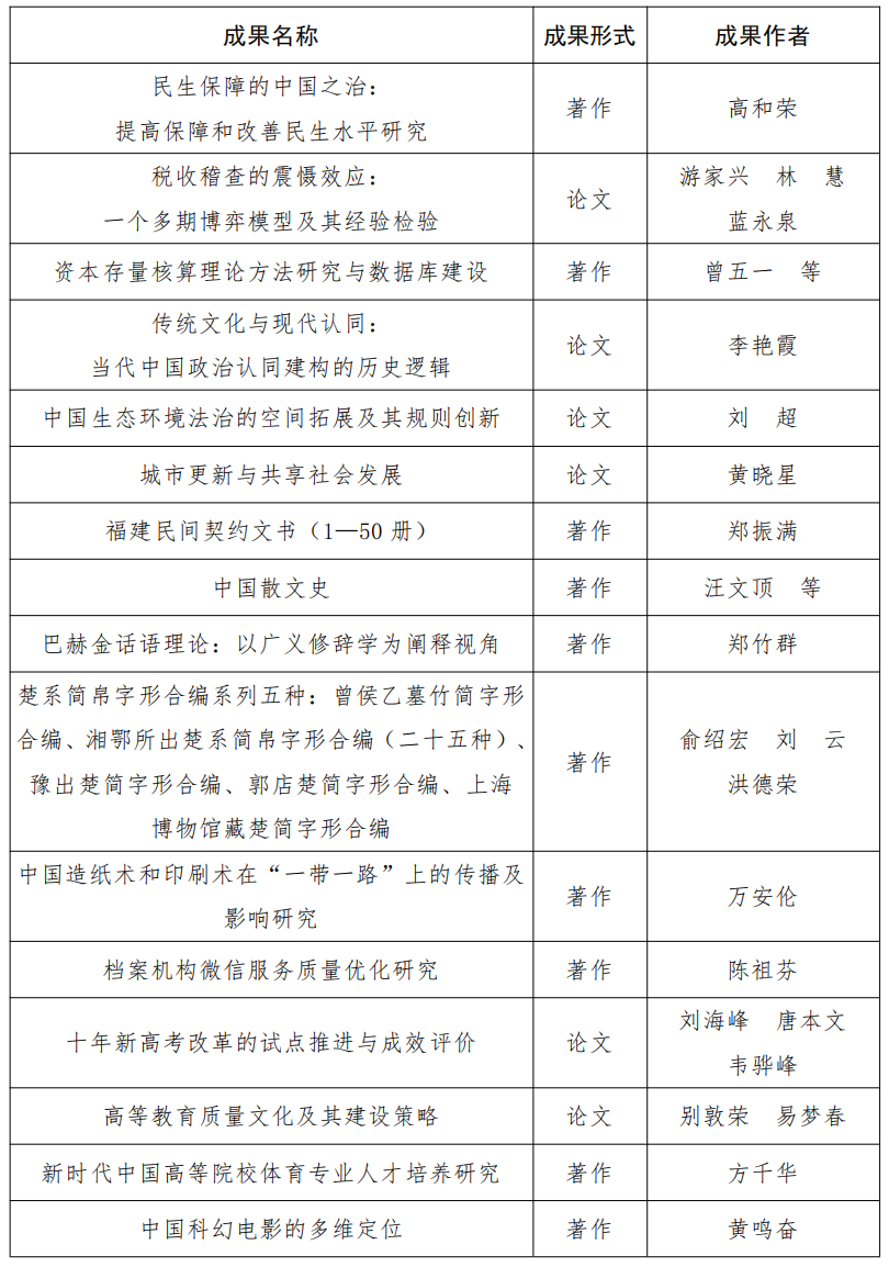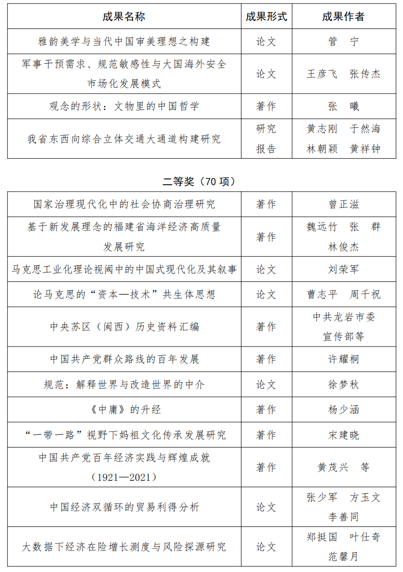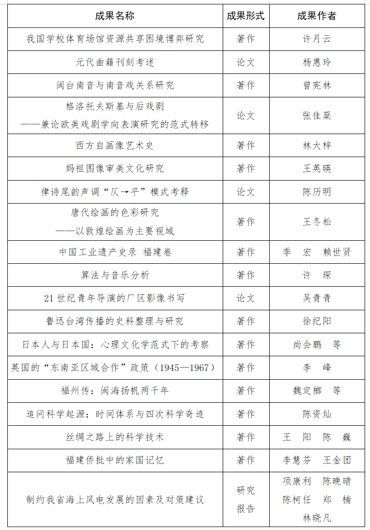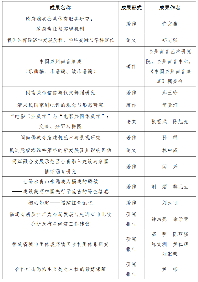最新发布!福建省第十六届社会科学优秀成果奖名单