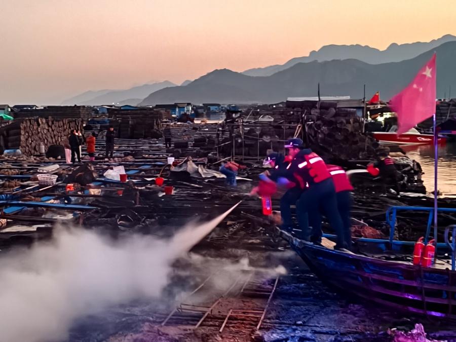 东南网1月9日讯(本网记者 林夏悦 通讯员 刘莹 王靖)1月7日16时许,福州海警局罗源工作站接到报警,罗源县鉴江镇古郁养殖区附近海域一处渔排突发火灾。现场有群众滞留,且着火渔排与周边相连,火势存在蔓延风险,情况紧急。