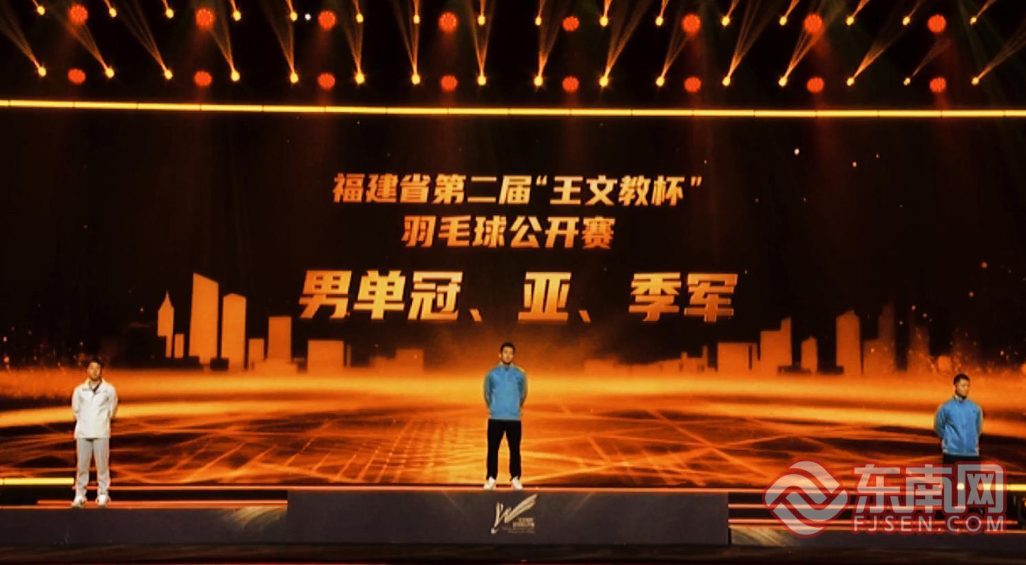 东南网1月10日讯(本网记者 陈楠 文/图)今晚,福建省奥林匹克体育中心体育馆华灯璀璨,星光汇聚。为致敬中国羽毛球事业奠基人、“人民楷模”王文教先生的“羽球报国”精神和卓越贡献,助推我省羽毛球运动薪火相传、精彩永续,一场以“传承羽球报国志 奋进八闽新征程”为主题、专属福建的“羽坛奥斯卡”——第二届“王文教杯”羽毛球公开赛颁奖仪式在此上演。