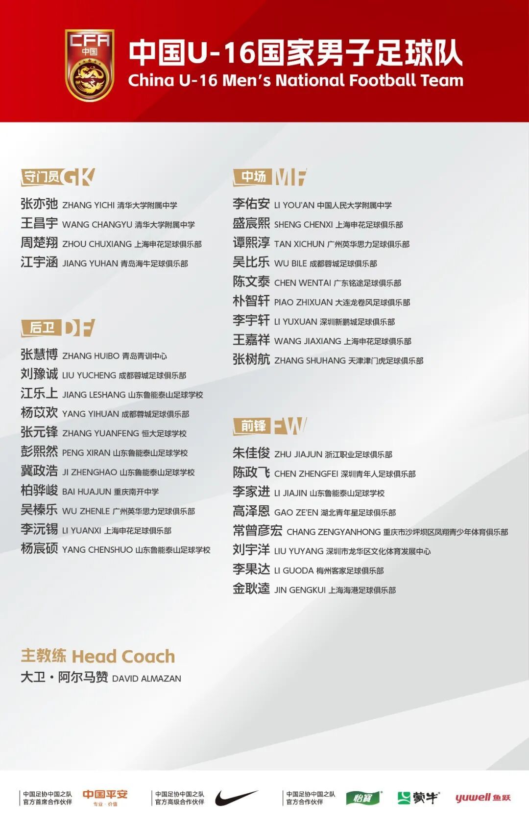 为备战2027年U17亚洲杯 1月12日至2月8日 中国U-16国家男子足球队 将赴福建漳州欢乐岛国际足球训练基地 开启集训 期间将进行封闭教学赛 全力锤炼队伍实力