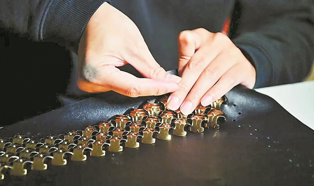 手工缝制铠甲细节。