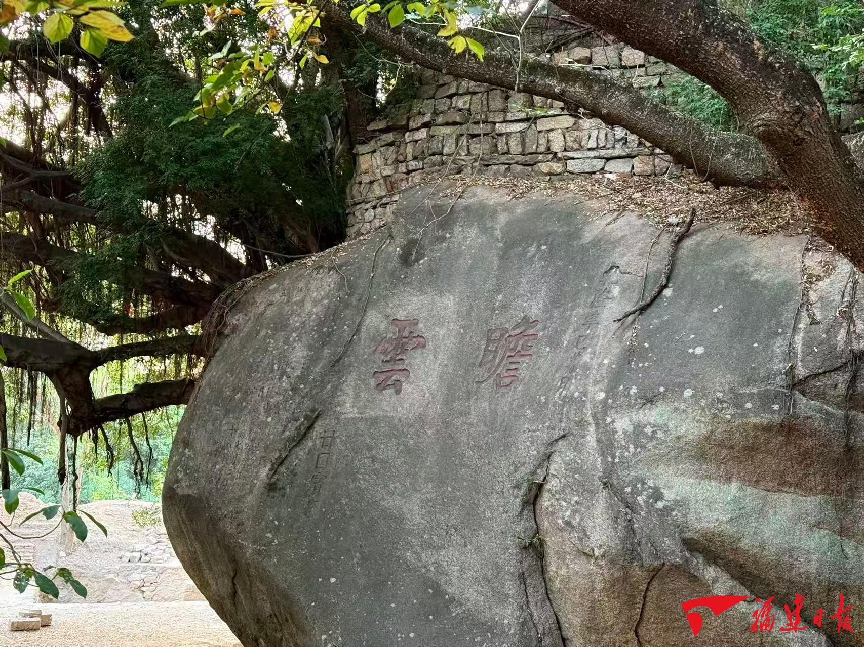 乾隆年间福建水师提督甘国宝在此题刻的“瞻云”二字,今仍清晰可辨,既抒发了登高望远之怀,亦寄托了对盛世气象之望;光绪年间福建水师提督杨岐珍所留“山环水活”四字,则道出了厦门所城山海交融的独特气质……现城墙遗址内,共遗存6处摩崖石刻。