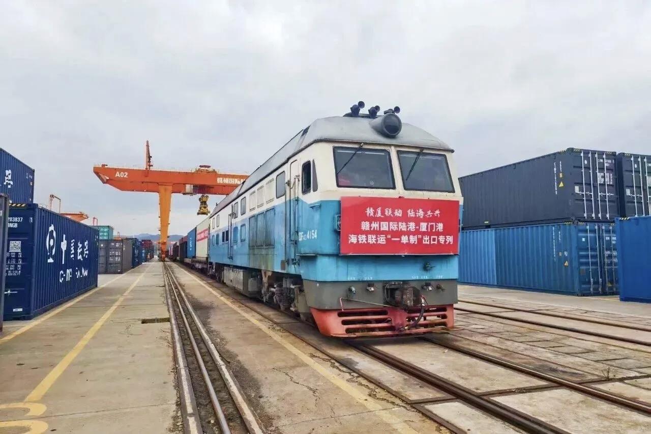 赣州国际陆港—厦门港海铁联运“一单制”出口首发专列 图片来源:福建港口集团