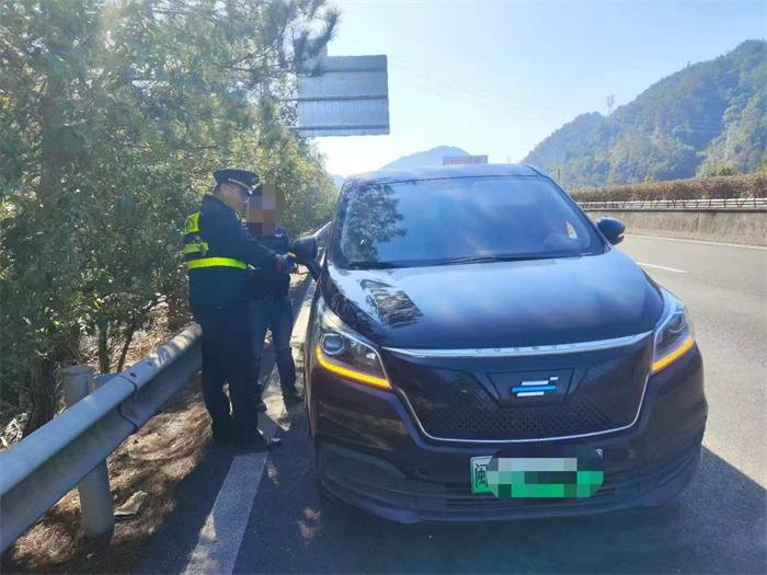 1月13日上午11时许,三明高速执法支队三大队在巡查至泉南高速吴山互通至大田互通路段时,发现一辆闽D牌照小客车违规停靠应急车道,两名乘客正沿边坡向涵洞方向移动,意图离开高速。执法人员立即上前核查,确认该车为网络预约出租车,核载5人,实际搭载5人(含已下车2人)。