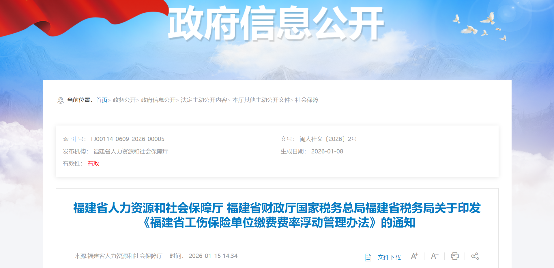 东南网1月15日讯(福建日报·新福建客户端记者 赵文娟)9日,省人社厅、省财政厅、省税务局联合印发《福建省工伤保险单位缴费费率浮动管理办法》(以下简称“《办法》”)。《办法》明确,自今年3月起,用人单位工伤保险费率将以上一年度支缴率为主要考核指标实行浮动,最高上浮至基准费率的150%,最低下浮至基准费率的50%。《办法》的出台,旨在发挥工伤保险费率的经济杠杆作用,推动用人单位筑牢安全生产防线。