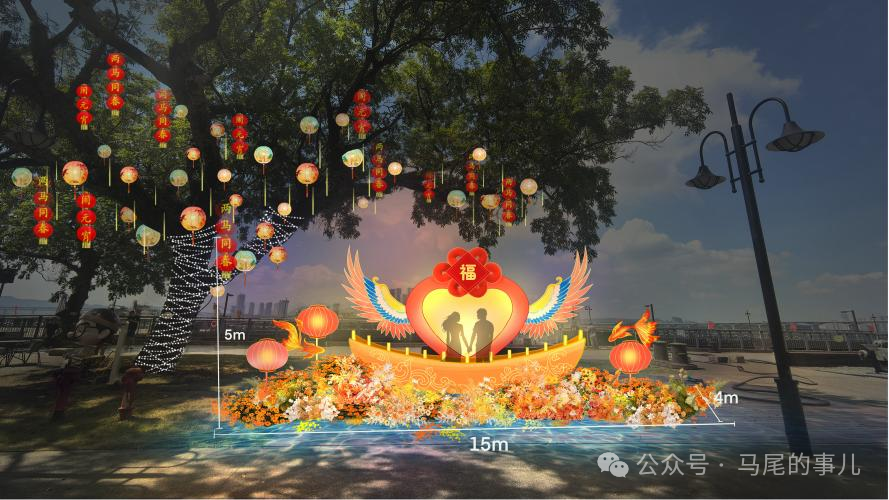 一艘承载爱心的船,即是表达爱人的永结同心,成为灯会期间情人节的打卡灯组,也是两岸同源、同根、同心的象征,再次呼应“两马一心”。
