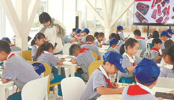 孩子在教室里上美育课。
