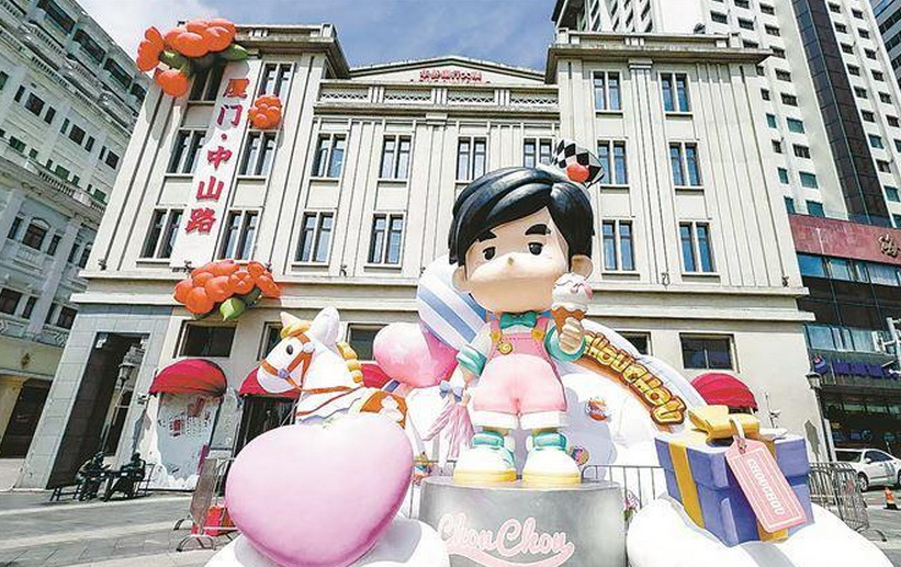 “周同学”IP大娃位于厦门中山路的打卡路标分外吸睛。图片来源:厦门市文旅局