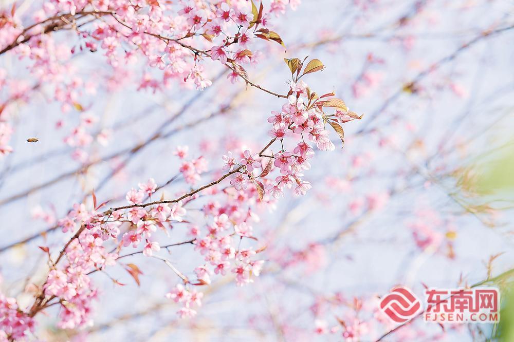 近日,在德化县唐寨山森林公园,冬樱花竞相绽放,漫山粉霞随风流转,如诗如画的花海铺就了一幅绚丽的生态画卷。
