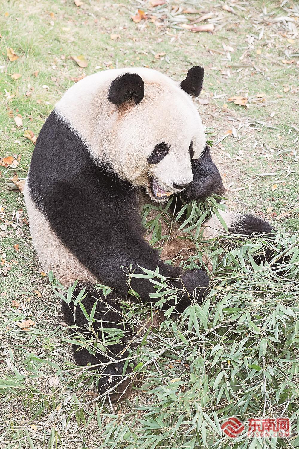 熊猫“艾伦”专注“吃播”。福建日报记者 施辰静 摄