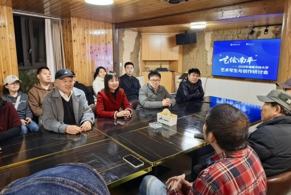 为深入贯彻落实学校南平延平校区西芹科教与艺术基地建设工作会议精神,推动艺术与科教深度融合,服务学校“双一流”建设,2026年1月16日至19日,福建农林大学成功举办“艺绘南平”--2026 年福建农林大学艺术写生与创作研讨会。来自湖北美术学院、福建省画院、福建省艺术研究院及省内外多所高校的 30余位知名艺术家与学者,齐聚福建农林大学南平延平校区西芹科教与艺术基地,开展了一系列高水平的学术研讨与实地写生活动。