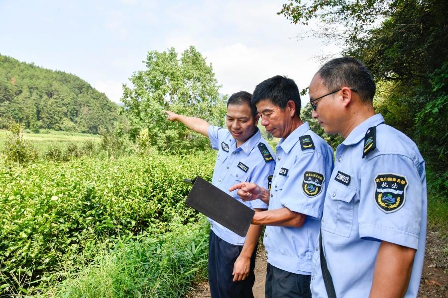 武夷山国家公园执法人员利用巡护App开展茶山整治。