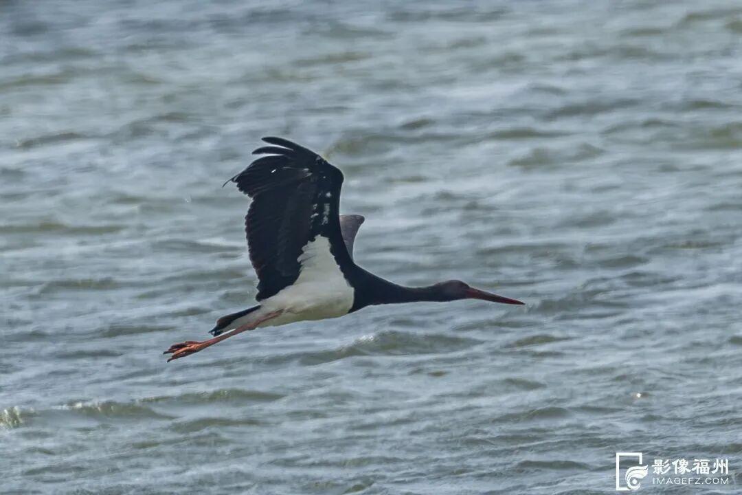 ▲黑鹳飞行时黑白羽色对比鲜明,姿态优雅独特,极具辨识度。卢国成/摄
