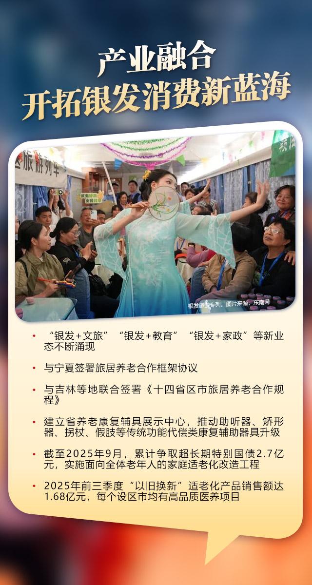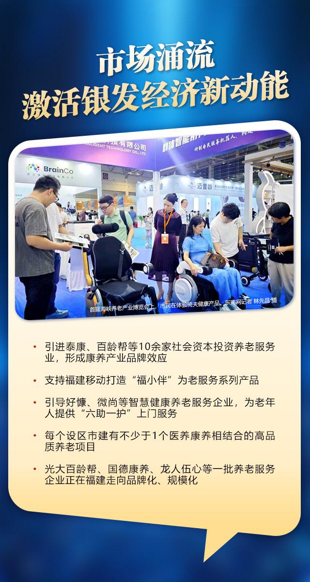 近日,民政部等八部门联合印发《关于培育养老服务经营主体促进银发经济发展的若干措施》,为各地银发经济发展注入新动力。作为积极应对人口老龄化、培育经济发展新动能、拓展内需潜力的重要抓手,福建省近年来通过培育多元市场主体、织密服务网络等多措并举,全面激发银发经济活力,一幅“山海有福,银发有为”的幸福画卷正在徐徐展开。