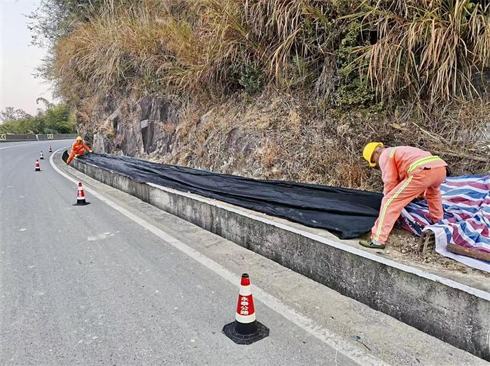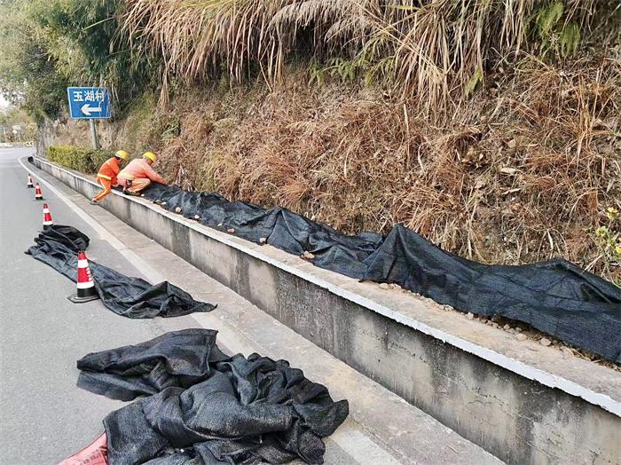 近日,受强冷空气影响,永泰县出现持续低温,国省干线部分路段出现霜冻,路面附着力下降,道路两侧绿化带植物面临冻害风险。为有效防范寒潮霜冻天气影响,永泰公路中心以"防"为先,迅速组织养护人员全力开展绿化带防冻作业。