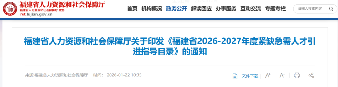 经省政府同意,现将《福建省2026-2027年度紧缺急需人才引进指导目录》印发给你们,请结合实际扎实做好人才引进工作,深入实施“人才强省”战略和“创新驱动发展”战略,引导境外、省外人才以多种形式向我省重点产业、行业、领域、项目、学科及地区集聚,为福建全方位推动高质量发展提供坚实人才支撑。
