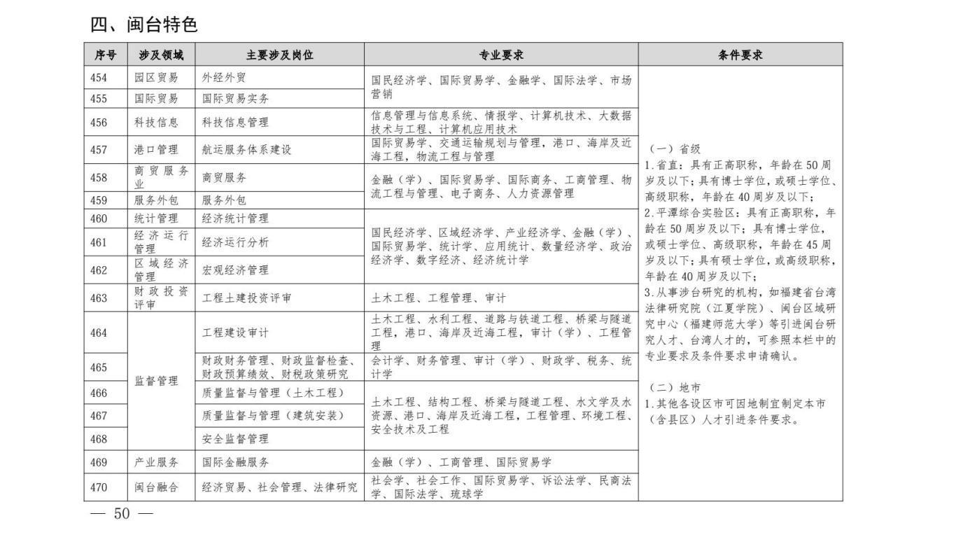 福建省2026-2027年度紧缺急需人才引进指导目录