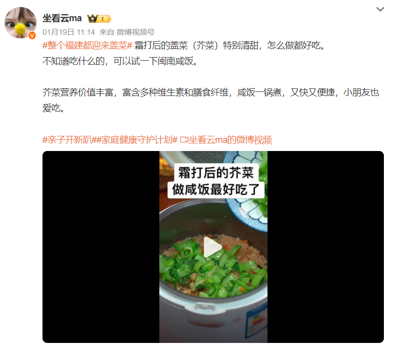 直接清炒或简单水煮盖菜,往往会放大苦味;而焯水、搭配油脂或与米饭同煮等方式,则能有效中和苦感、释放清香。正因如此,盖菜在福建多以咸饭、菜粥、焖煮等方式出现,逐渐形成了极具地域特色的家常吃法。