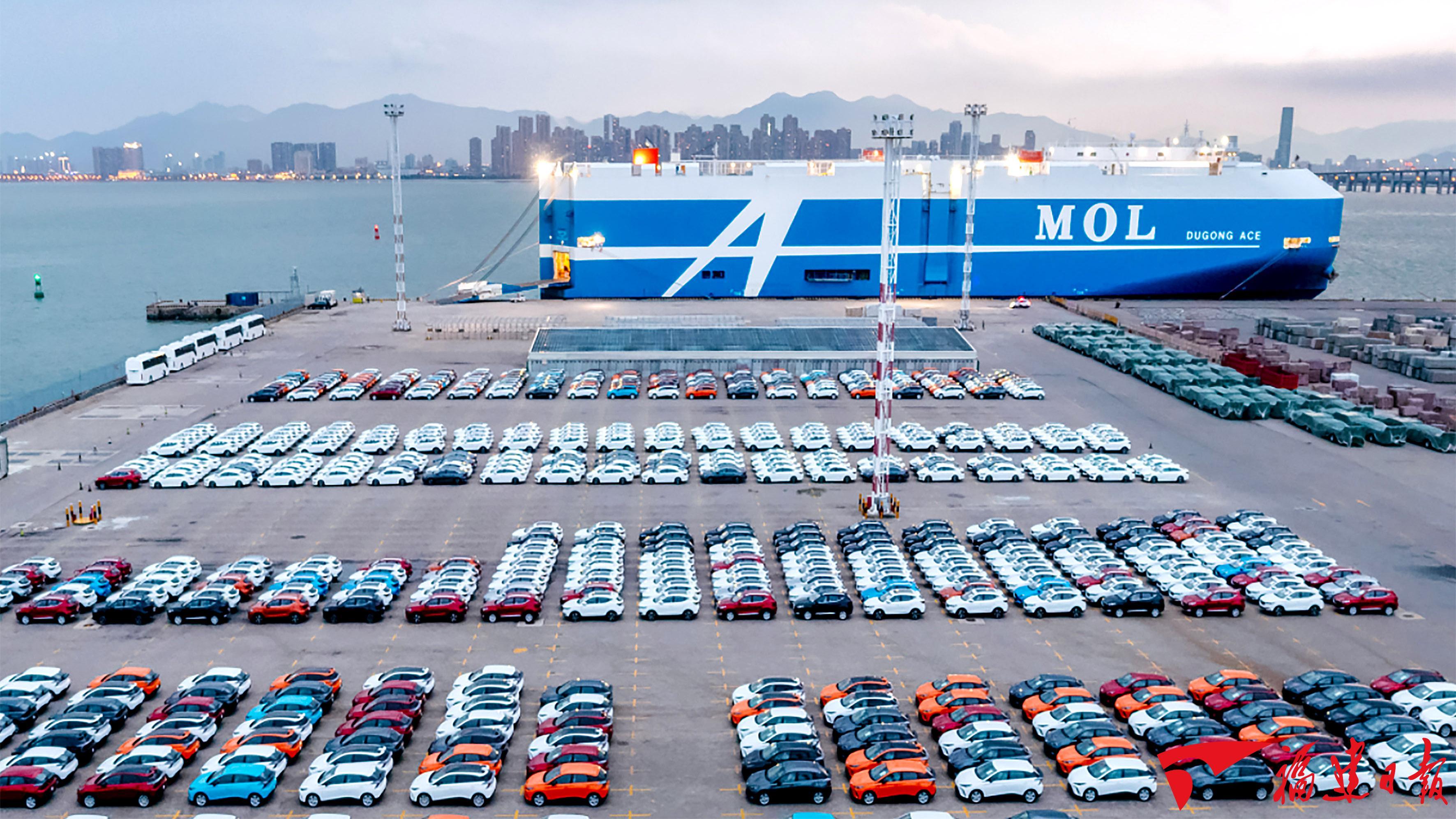 “十四五”以来,福建聚焦“碳达峰、碳中和”目标,推动新能源汽车、电动船舶、动力电池三大核心领域实现高质量发展。图为2023年8月10日,1500台上汽新能源汽车即将装船发往澳洲,创下厦门现代码头出口澳洲商品车单次最大批量。 林梓健 摄
