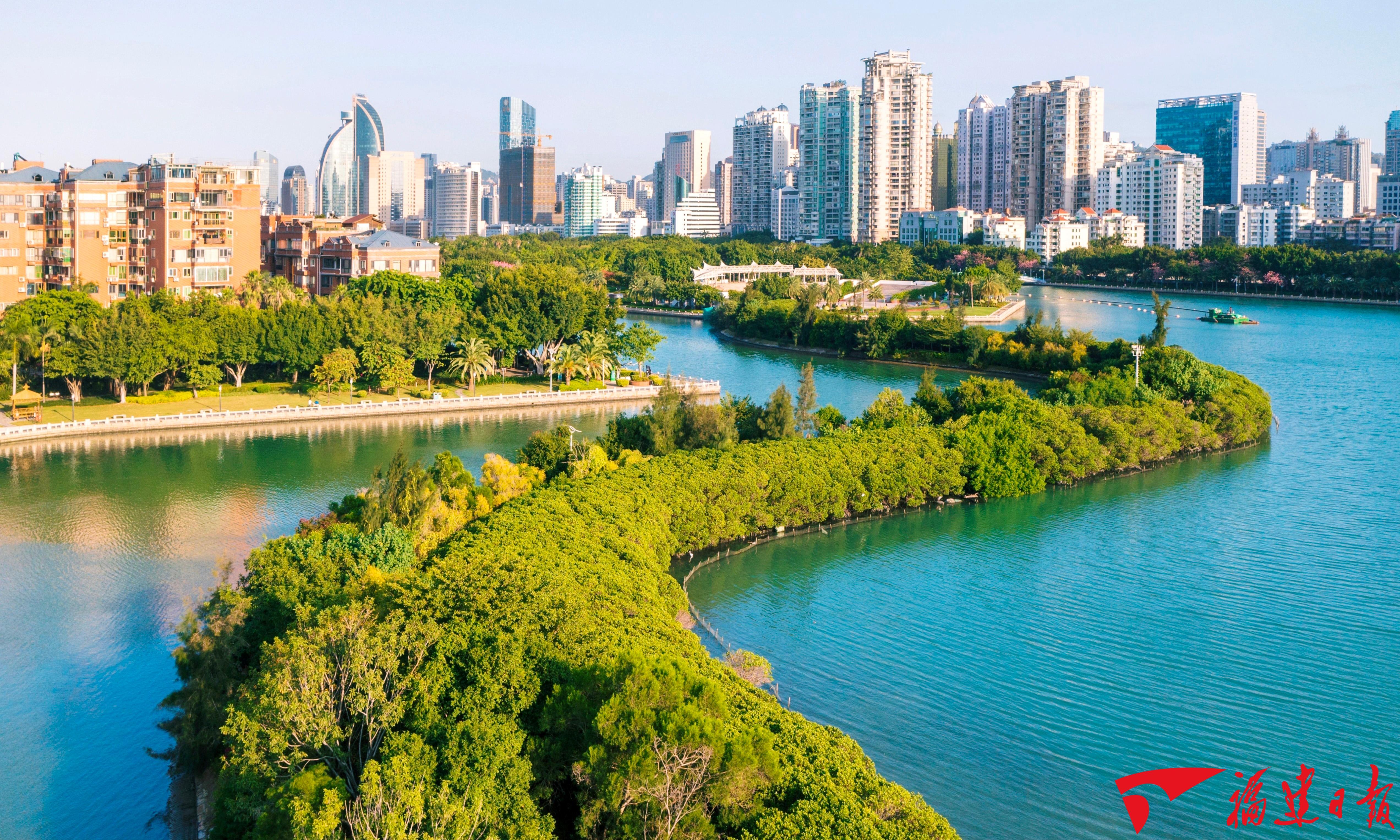 福建接续推进生态省建设,习近平生态文明思想“厦门实践”经验全国推广,福州荣膺首届全球可持续发展城市奖,水土流失治理“长汀经验”入选世界生态修复典型案例,湄洲岛“零碳岛屿”案例亮相联合国气候大会。图为水清岸绿的厦门筼筜湖。施辰静 摄