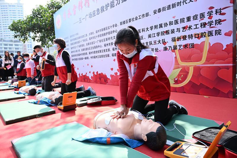 福州市红十字会培训中心为群众演示AED操作流程。叶诚 摄